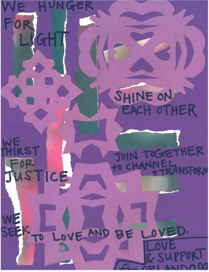 Last Sunday UCG and the greater community gathered to create flyers of support and love for Orlando. It was part of a project by artist Oliver Bendorf. Thanks to Kristen Angeline-Stone for organizing. Enjoy these beautiful flyers and visit Oliver’s website for downloadable PDFs