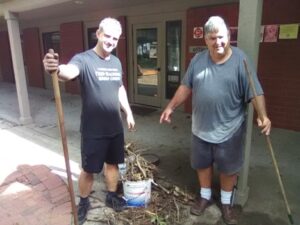 Glenn Mans and his wonderful group of CourtYard Volunteers (CYV) have been doing heroic work in the courtyard to mitigate drainage problems. Glenn has been collecting data on the percolation rates in various areas during rain events and testing the effect of their efforts. We are so appreciative of that hard physical labor, especially in this heat, and are holding our breaths that we will be spared catastrophic rain events now that hurricane season is underway.